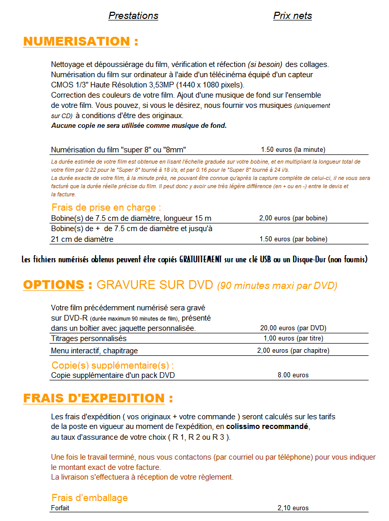 Donnez une nouvelle dimension à vos films. Parce qu'il s'agit de vos meilleurs souvenirs, il nous parait essentiel d'apporter tout notre savoir faire pour que vous obteniez un film répondant à vos attentes. Ces précieux souvenirs, vous les avez sur pellicule (8mm, super8, 9,5mm ou 16mm) qui vieillissent mal.